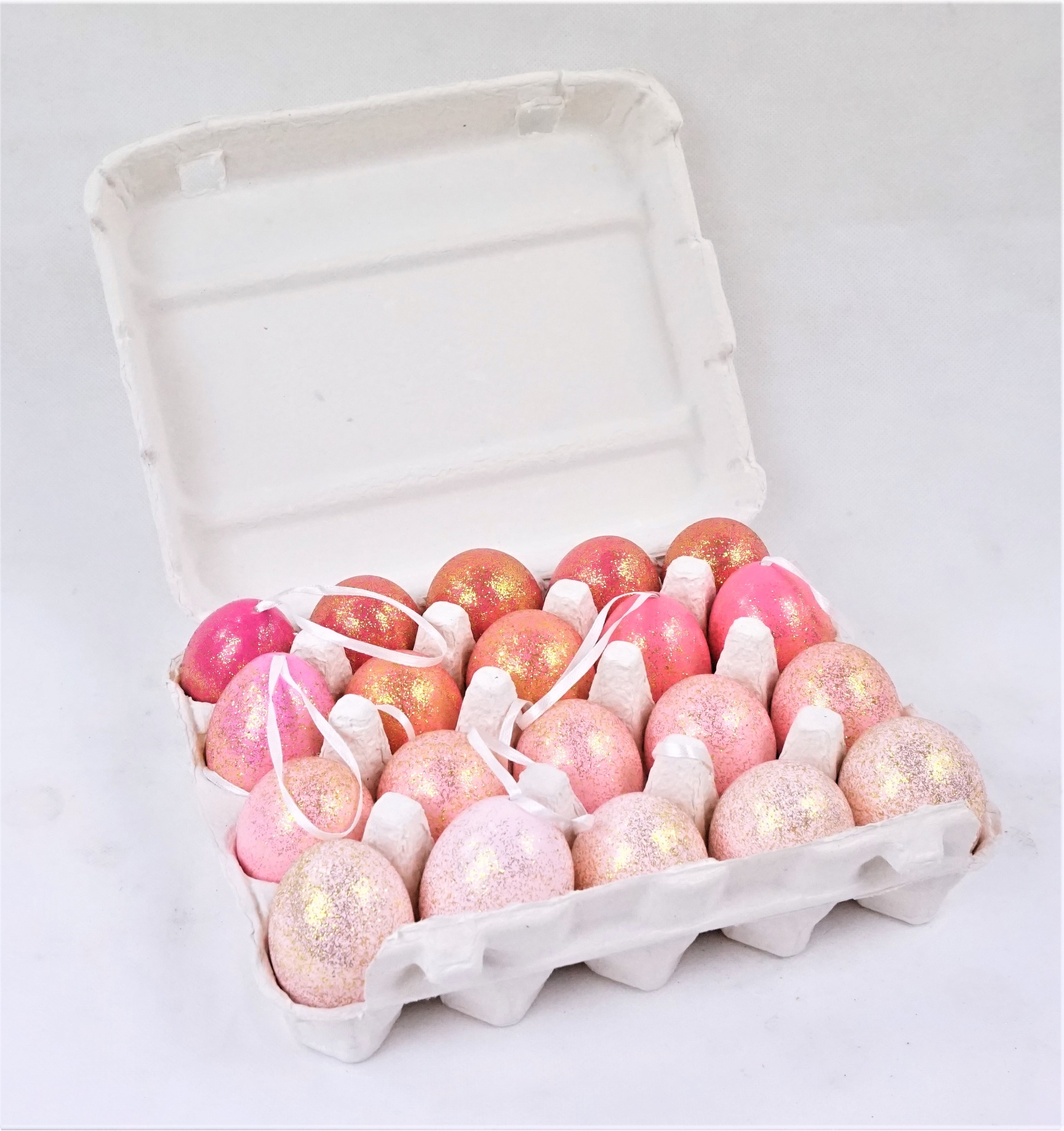 Transformez votre magasin en un élégant paradis de Pâques avec notre DISPLAY D'OEUFS exclusif "ROSÉ" S/20. Ce set de 20 œufs roses scintillants de haute qualité attire tous les regards et donne une touche spéciale à chaque décoration de Pâques. Les œufs ont une taille pratique d'environ 5,5 cm et sont emballés dans une élégante boîte à œufs d'environ 20x25 cm. Le rose délicat et le scintillement glamour ne sont pas seulement une fête pour les yeux, mais aussi une invitation pour vos clients à se plonger dans le monde enchanteur du printemps.