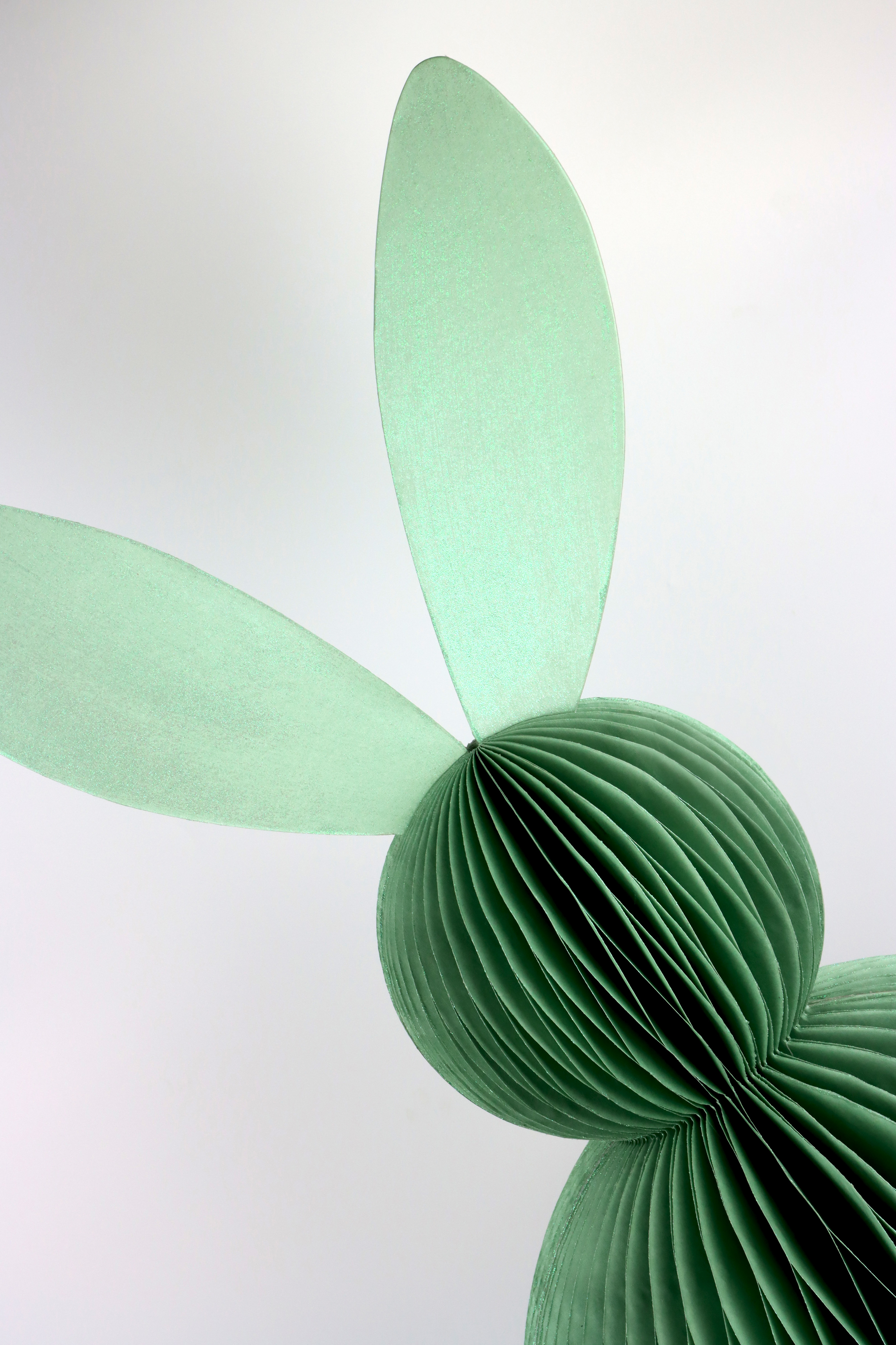 Découvrez le charmant lapin décoratif "HONEYCOMB" d'un vert frais qui fera passer votre décoration de Pâques au niveau supérieur. Fabriqué en papier de qualité supérieure et soigneusement conçu, ce lapin de Pâques d'environ 50 cm se distingue par sa structure unique en forme de nid d'abeille. Cette texture particulière confère au lapin décoratif non seulement un aspect tridimensionnel attrayant, mais aussi une stabilité remarquable.