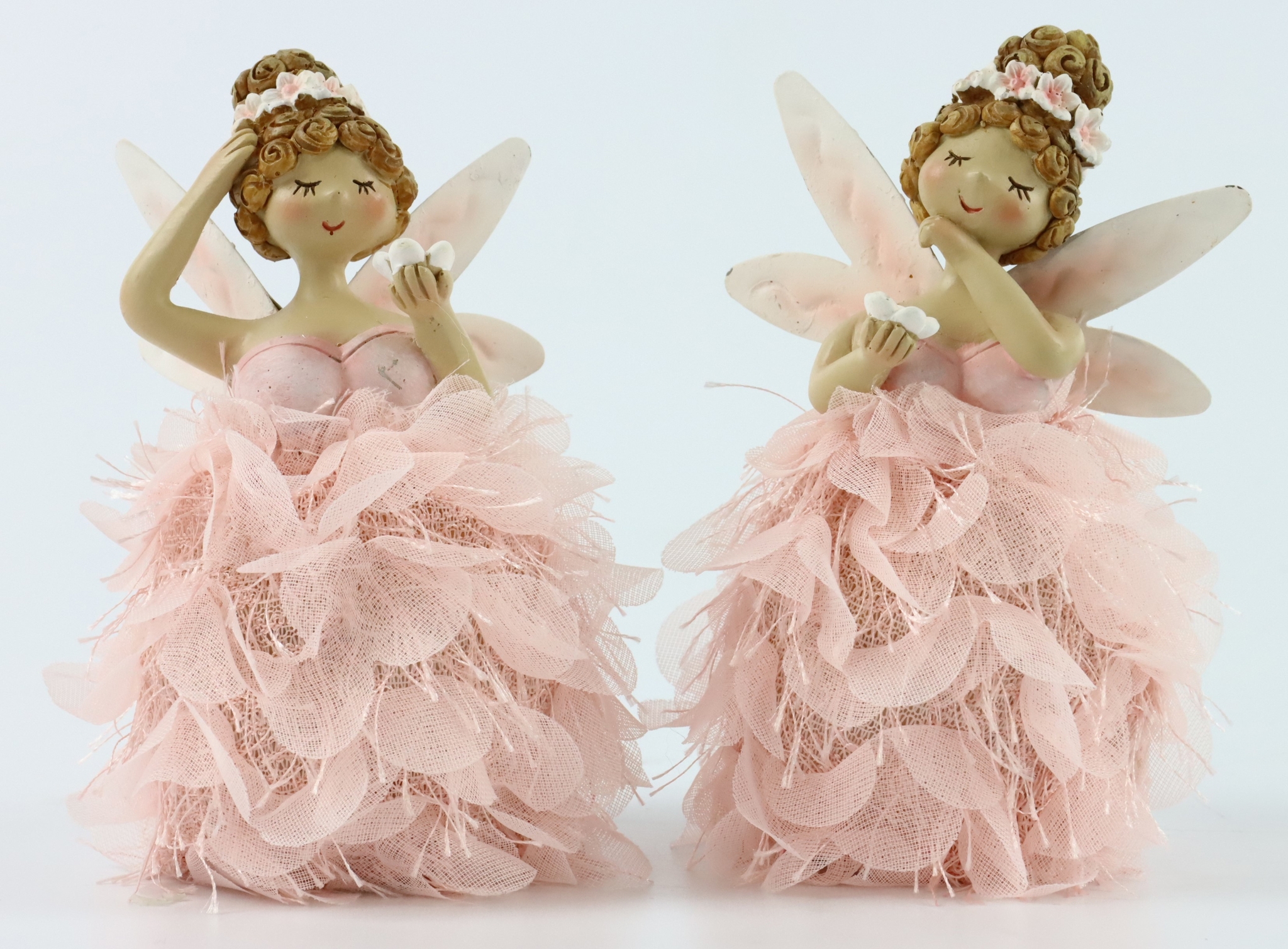 Scoprite l'incantevole set "Fate dei fiori" in un grazioso colore rosa che aggiungerà un tocco fresco e incantevole al vostro assortimento nella vendita al dettaglio di articoli di cartoleria. Questo set di due pezzi per la primavera/estate farà sognare i vostri clienti e sarà ideale come elemento decorativo nei negozi di articoli per la casa e il lifestyle. Le delicate figurine sono realizzate in poliresina di alta qualità e misurano circa 11,5 cm ciascuna, una dimensione perfetta per brillare in vari ambienti.
