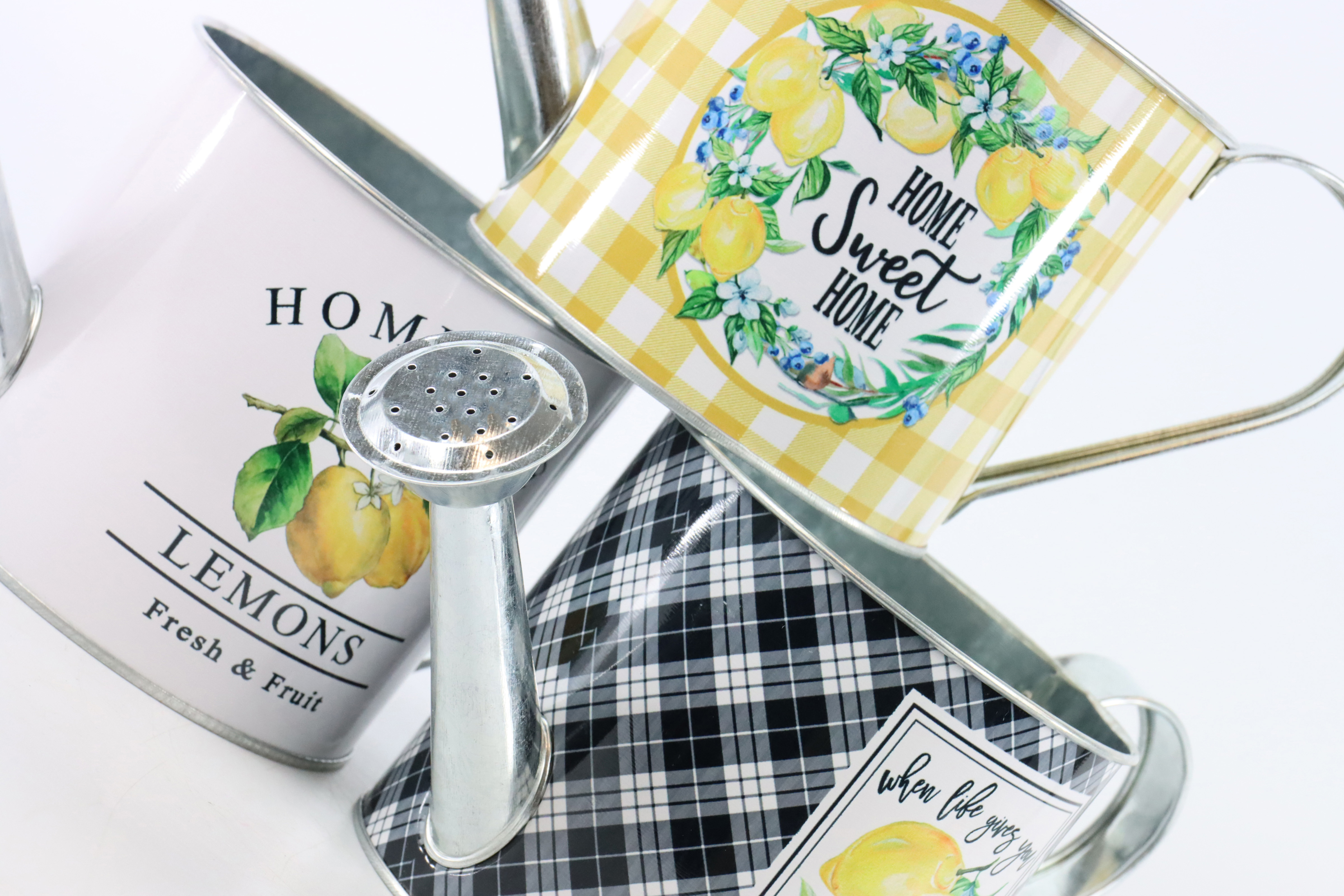 Il set di annaffiatoi "SWEET LEMON" è ideale per gli appassionati di giardinaggio e per i rivenditori di articoli per la casa e il lifestyle che desiderano offrire ai propri clienti prodotti unici ed eleganti. Grazie alle finiture di alta qualità e al design unico, questo set offre il perfetto equilibrio tra funzionalità ed estetica. Per innaffiare le piante o come elemento decorativo, questi annaffiatoi sono versatili.