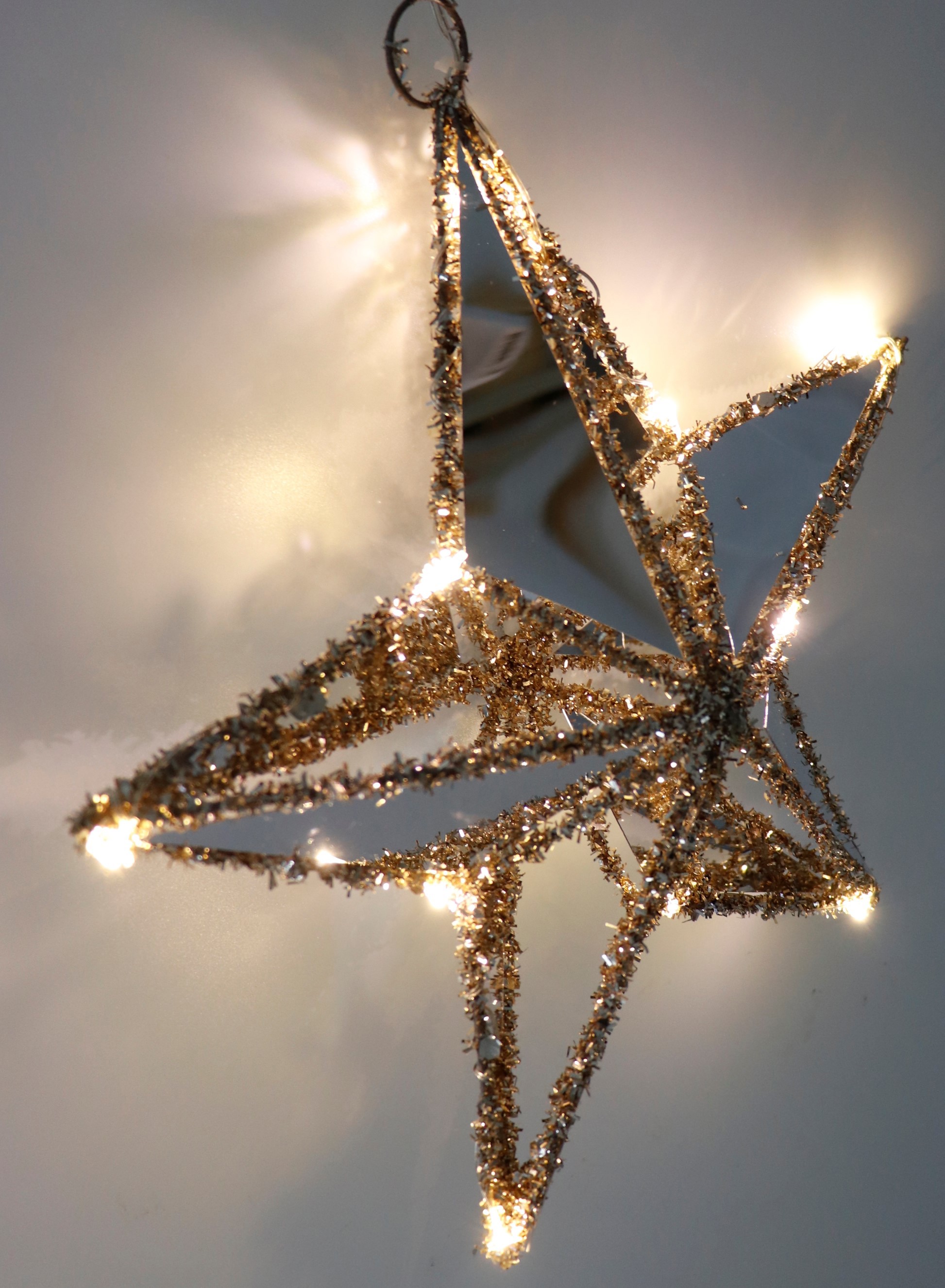 - Elegante stella illuminata a LED, alta circa 30,5 cm, con bordo dorato