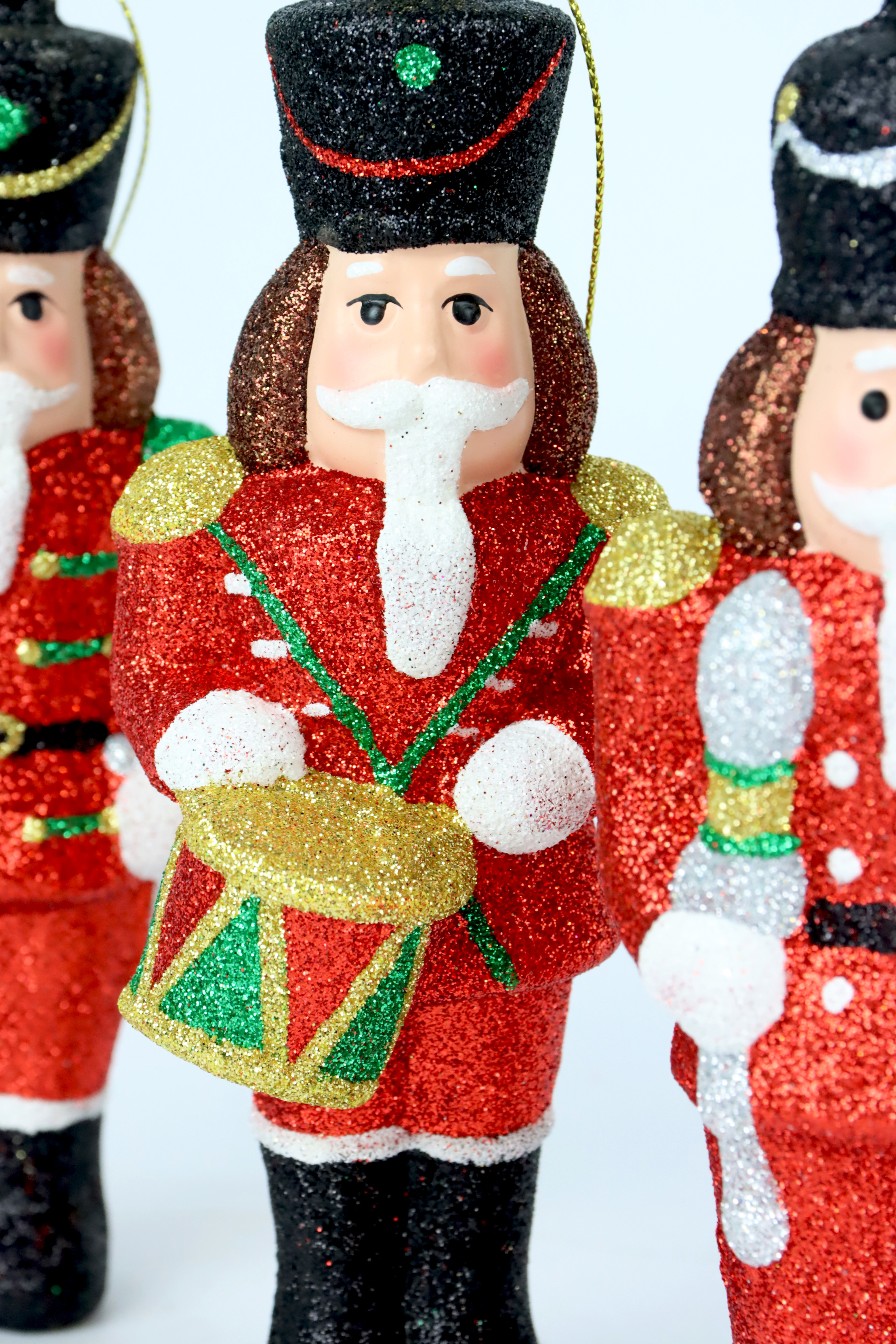 Le vivaci figure natalizie in plastica sono altamente dettagliate e decorate con brillantini che catturano ogni luce e fanno risaltare al meglio le vostre decorazioni natalizie. Il set è composto da tre soldati disegnati singolarmente e fieramente eretti. Ogni figura è alta circa 15 cm ed è perfetta per essere collocata sull'albero di Natale o in una composizione natalizia. Grazie al materiale di alta qualità, gli ornamenti sono resistenti e possono essere utilizzati per molte feste natalizie negli anni a venire.