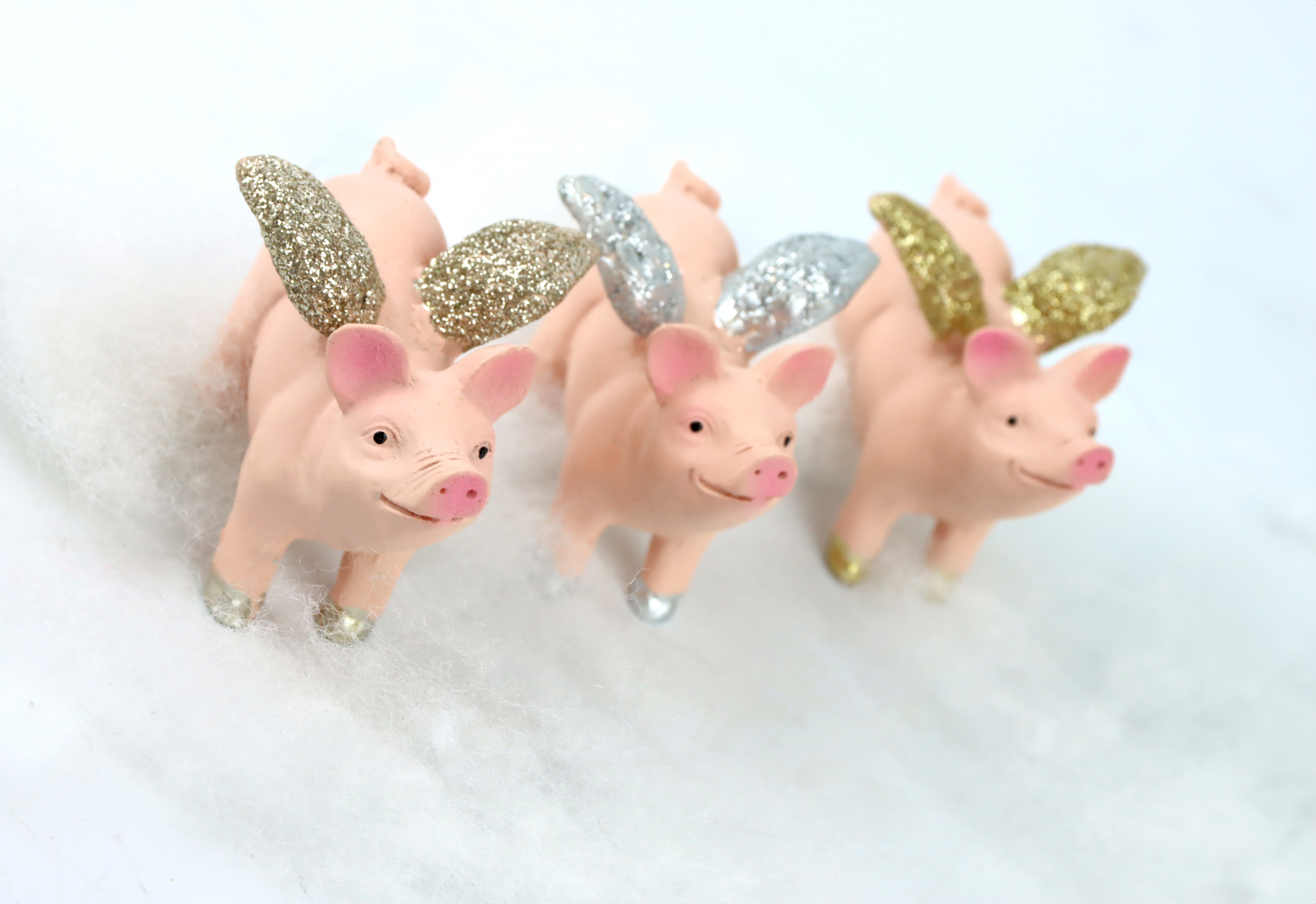 Scegliete i prodotti di tendenza del settore casa e lifestyle. La moderna interpretazione del portafortuna si abbina perfettamente agli altri articoli decorativi della nostra gamma e costituisce un ottimo richiamo per l'ambiente natalizio. I tre maiali alati sono confezionati in modo sicuro ed elegante nella scatola in dotazione. Sono molto facili da posizionare su uno scaffale, una scrivania o il davanzale di una finestra e aggiungono un tocco di nostalgia.