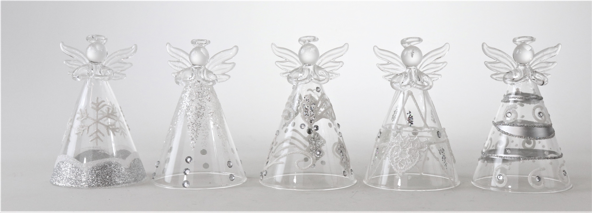 I nostri angeli di vetro della serie "Palais" fanno parte del nostro set di 5 pezzi, che colpisce per il suo aspetto elegante e semplice. Il numero d'articolo 8446 vi dà accesso esclusivo a questi meravigliosi elementi decorativi.