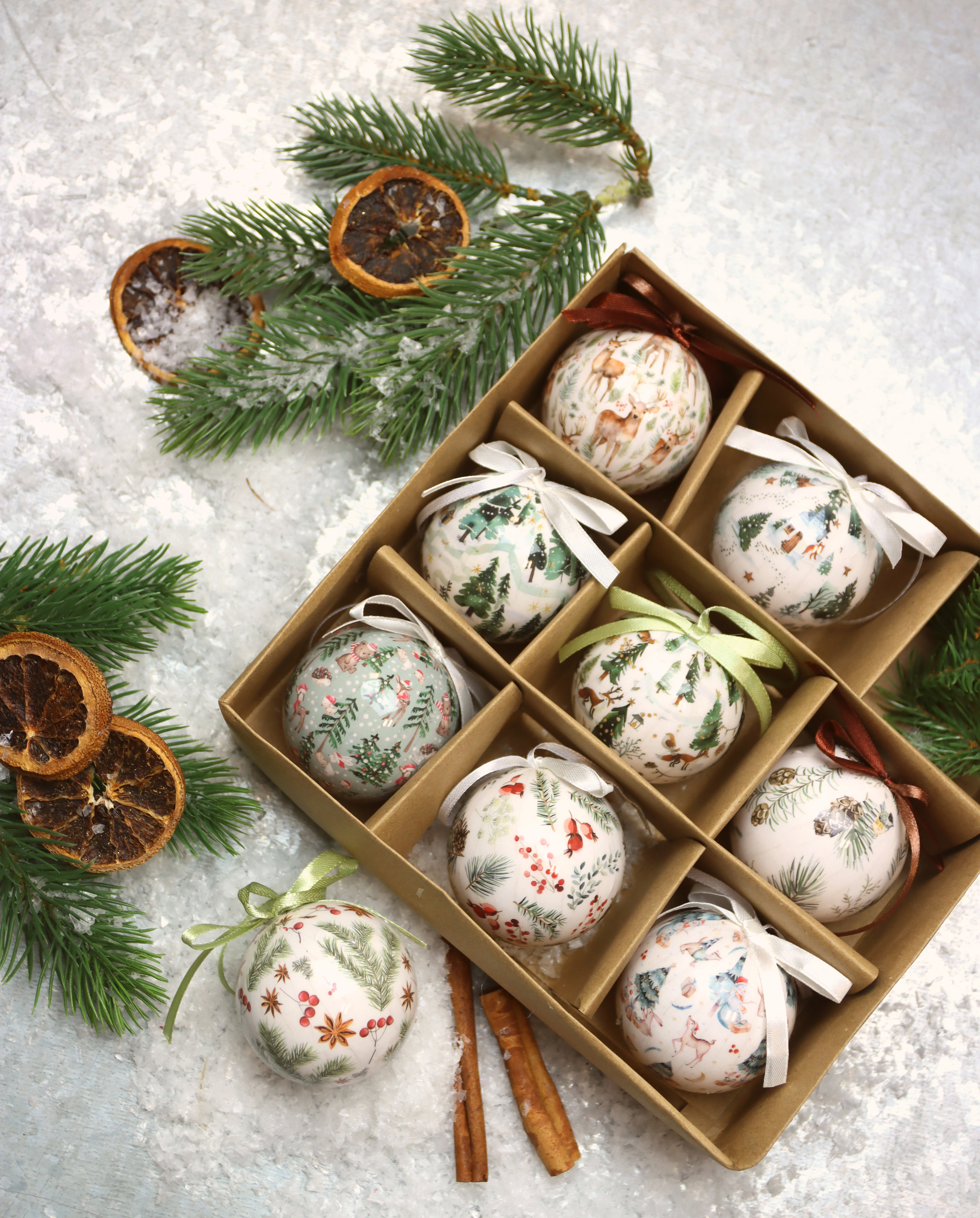 Il periodo natalizio è l'occasione perfetta per trasformare il vostro locale di vendita in un ambiente festoso che incanterà i vostri clienti. Il nostro set di 9 pezzi "Woodland Christmas" (codice articolo: 9539) è l'elemento decorativo giusto per raggiungere questo obiettivo. I gingilli hanno un diametro di 6 cm e sono realizzati in plastica di alta qualità. Sono confezionati in un'elegante scatola che non solo li rende facili da conservare, ma ne semplifica anche la presentazione in negozio.