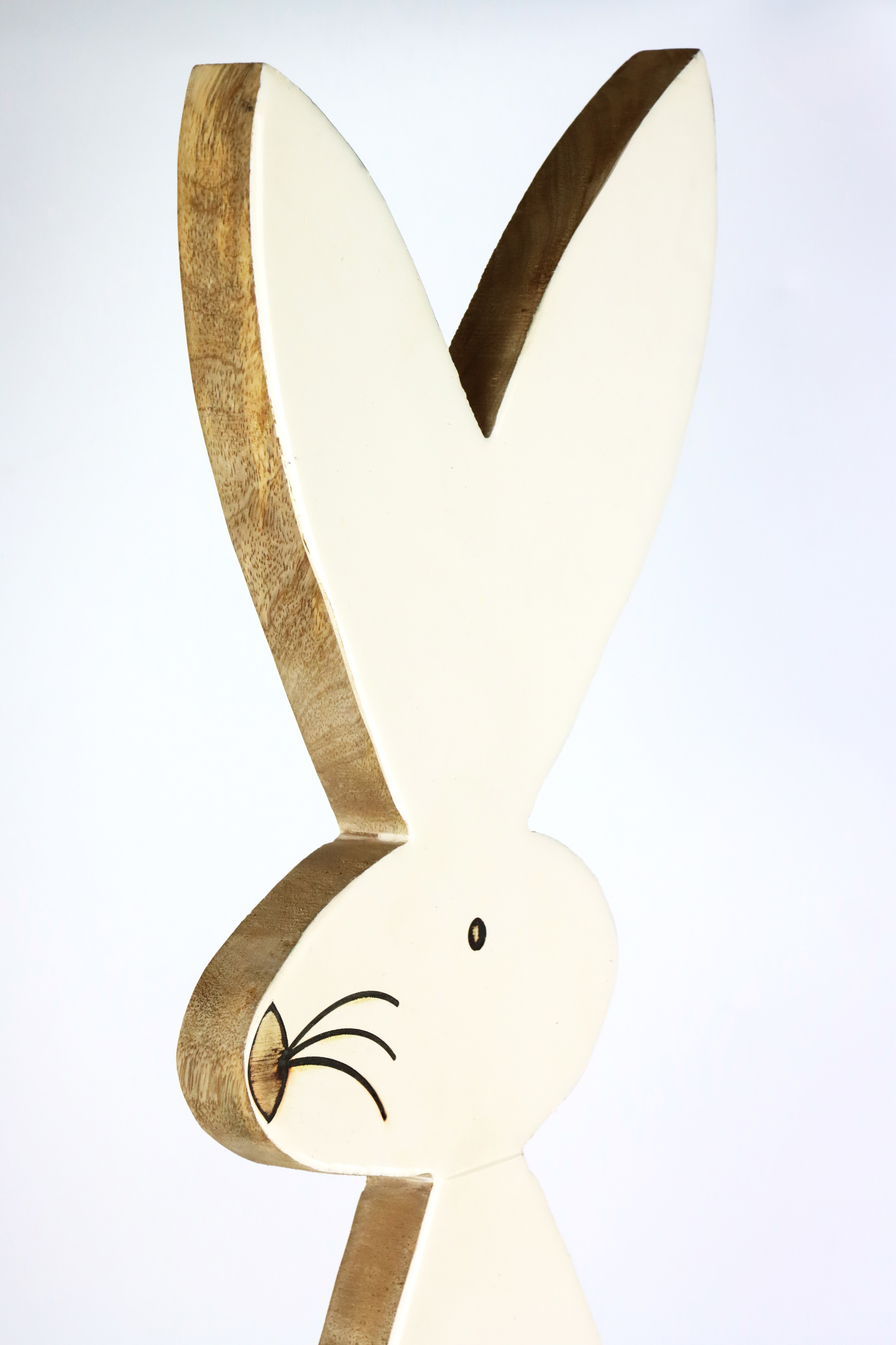 Aggiungete un fascino naturale alla vostra esposizione stagionale nella vendita al dettaglio di articoli di cartoleria o nel vostro negozio di lifestyle con il nostro esclusivo coniglietto in legno "Happy Easter". Questo imponente coniglietto decorativo, realizzato in legno di mango di alta qualità, non è solo un richiamo visivo, ma anche un elemento decorativo sostenibile che si inserisce armoniosamente in ambienti moderni e tradizionali. Con un'altezza di circa 85 cm, questo coniglietto in legno è ideale per la decorazione delle vetrine e attirerà magicamente l'attenzione dei vostri clienti con la sua presenza.