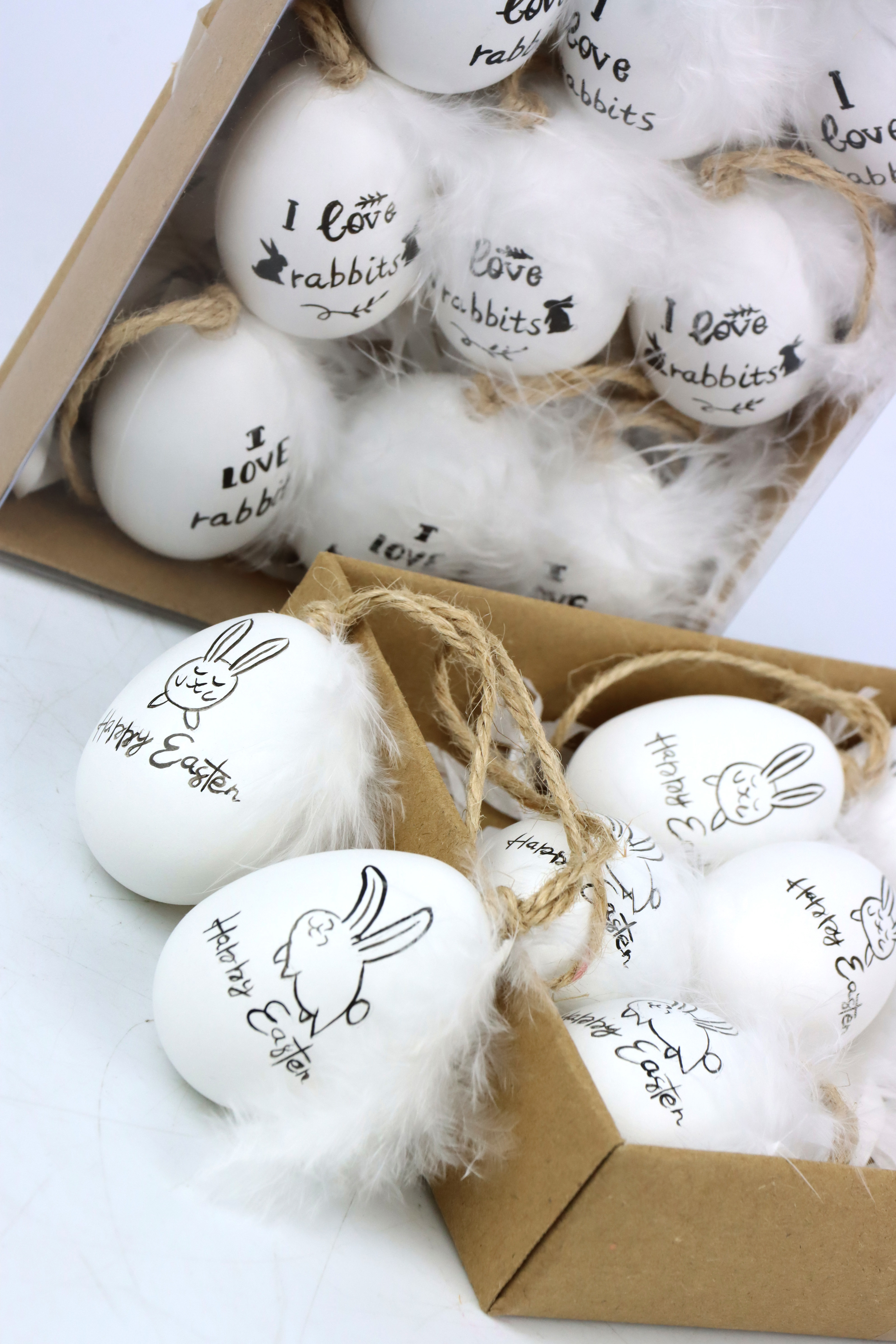 Scoprite il magico mondo di "Rabbit Love", l'elemento decorativo perfetto per il periodo pasquale! Il nostro esclusivo set di scatole per uova da 18 pezzi comprende uova appese accuratamente progettate e decorate con un delizioso motivo a coniglio. Queste affascinanti uova decorative hanno una dimensione di circa 5 cm e il loro delicato design in plastica le rende resistenti e sicure da usare, ideali per la vendita al dettaglio nel settore della casa e del lifestyle.